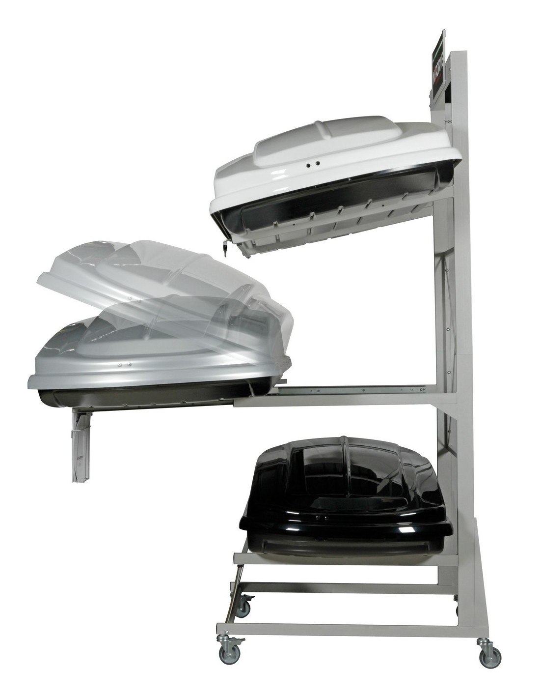 Espositore con ruote per 3 Box tetto