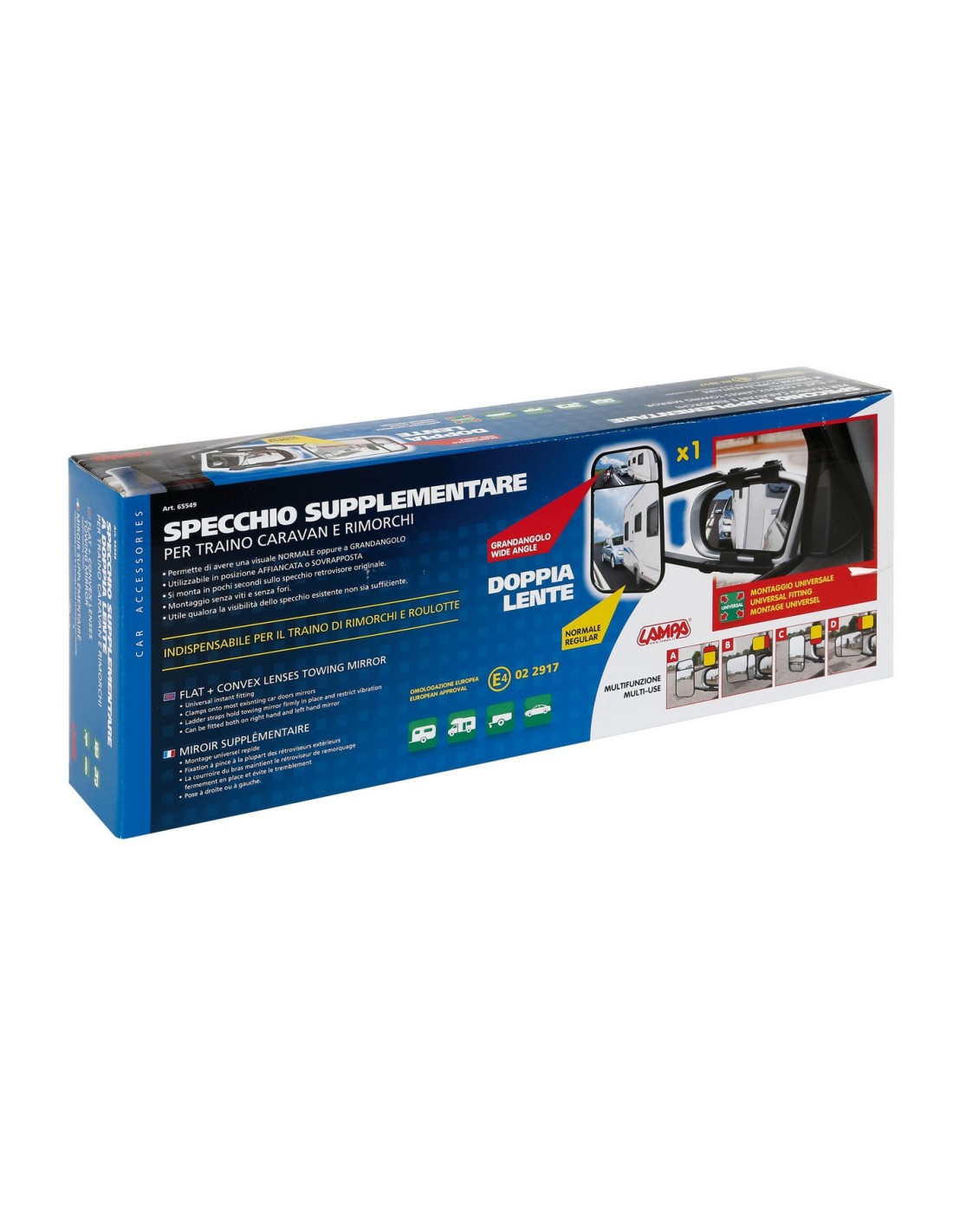 Si monta in pochi secondi sullo specchio retrovisore originale.