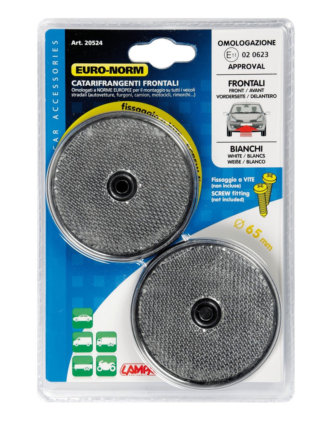 2 pezzi. Omologati a norme europee. Fissaggio tramite viti (non incluse)