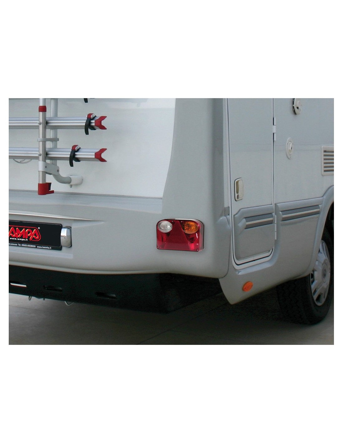 Posizione, stop, direzione, retromarcia, luce targa, catarifrangente triangolare. Omologazione Europea Lampadine incluse (2x): P21W, P21/5W