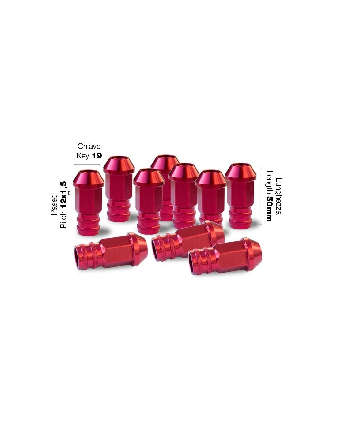 10 DADI ERGAL ROSSI CHIAVE 19 12X1,5 L.50 MM
