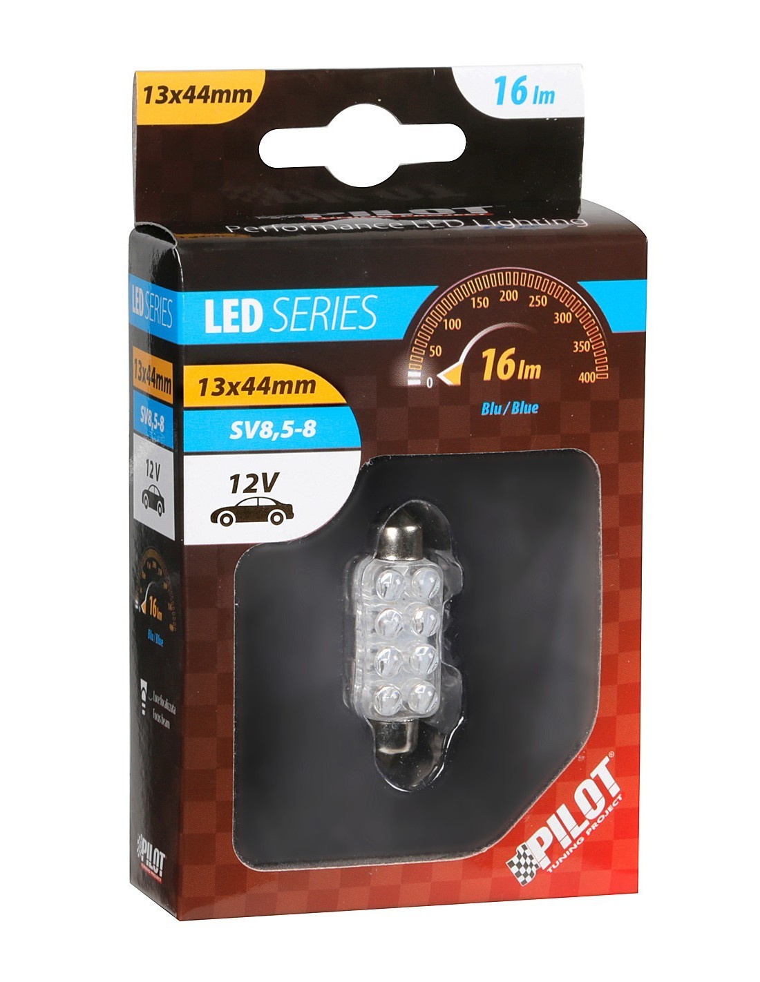 LAMPADIN. 10MMX44MM MEGA-BRITE 8 LED BLU