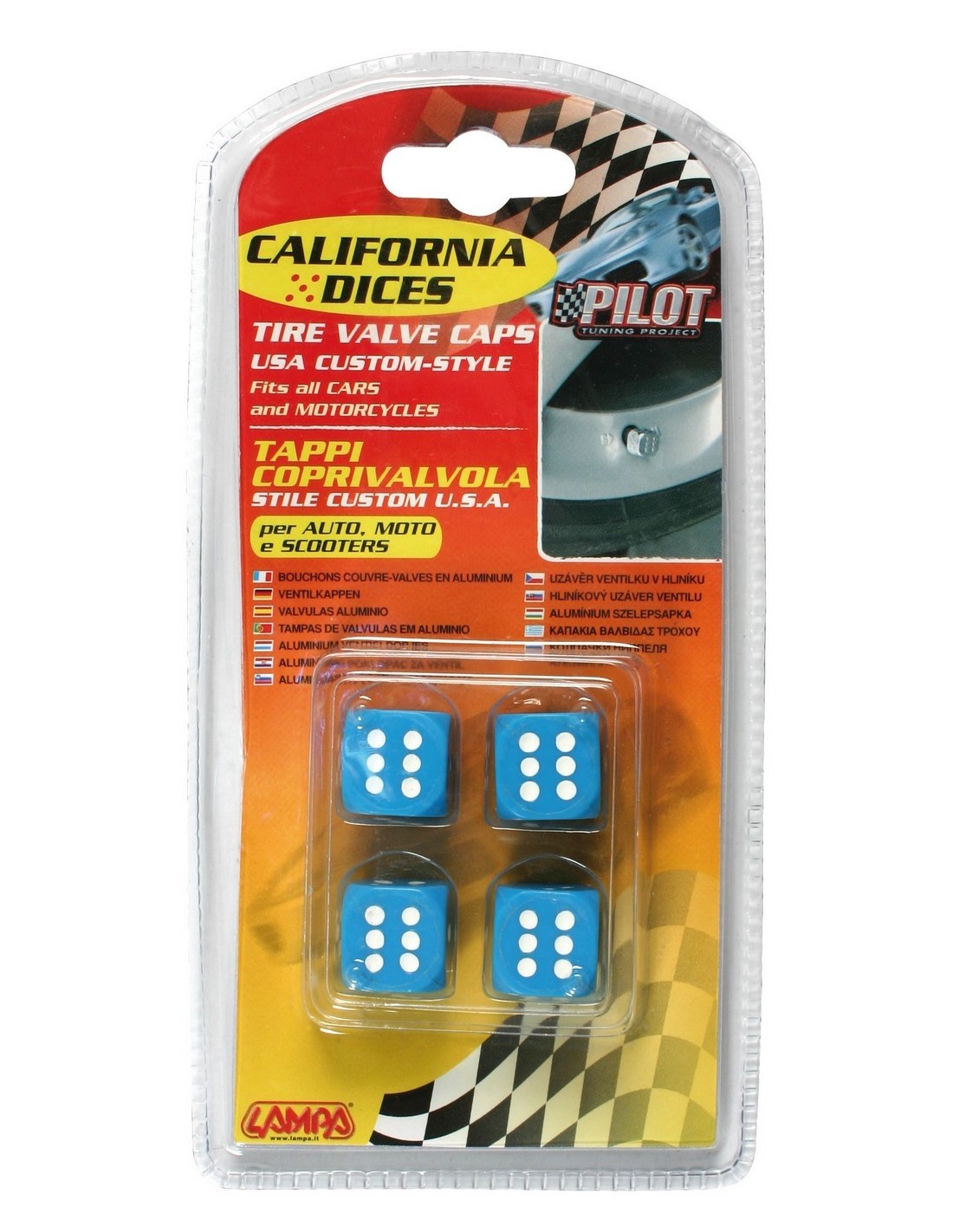 SET 4 DADI COPRIVALVOLA BLU + PUNTINI BIANCHI