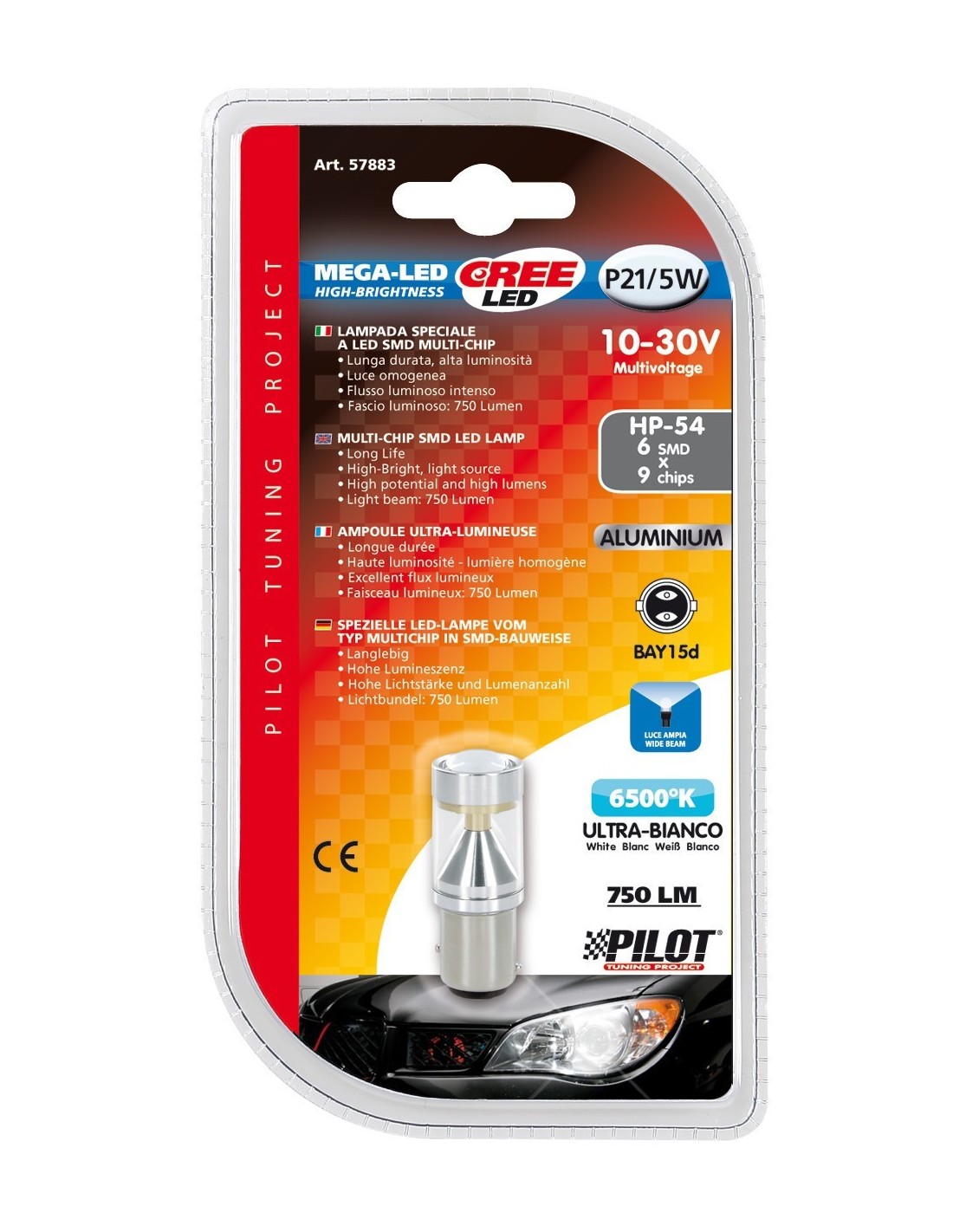 -LAMPADA MEGA-LED--10-30V 6SMD CREE BAY15D, WHITE