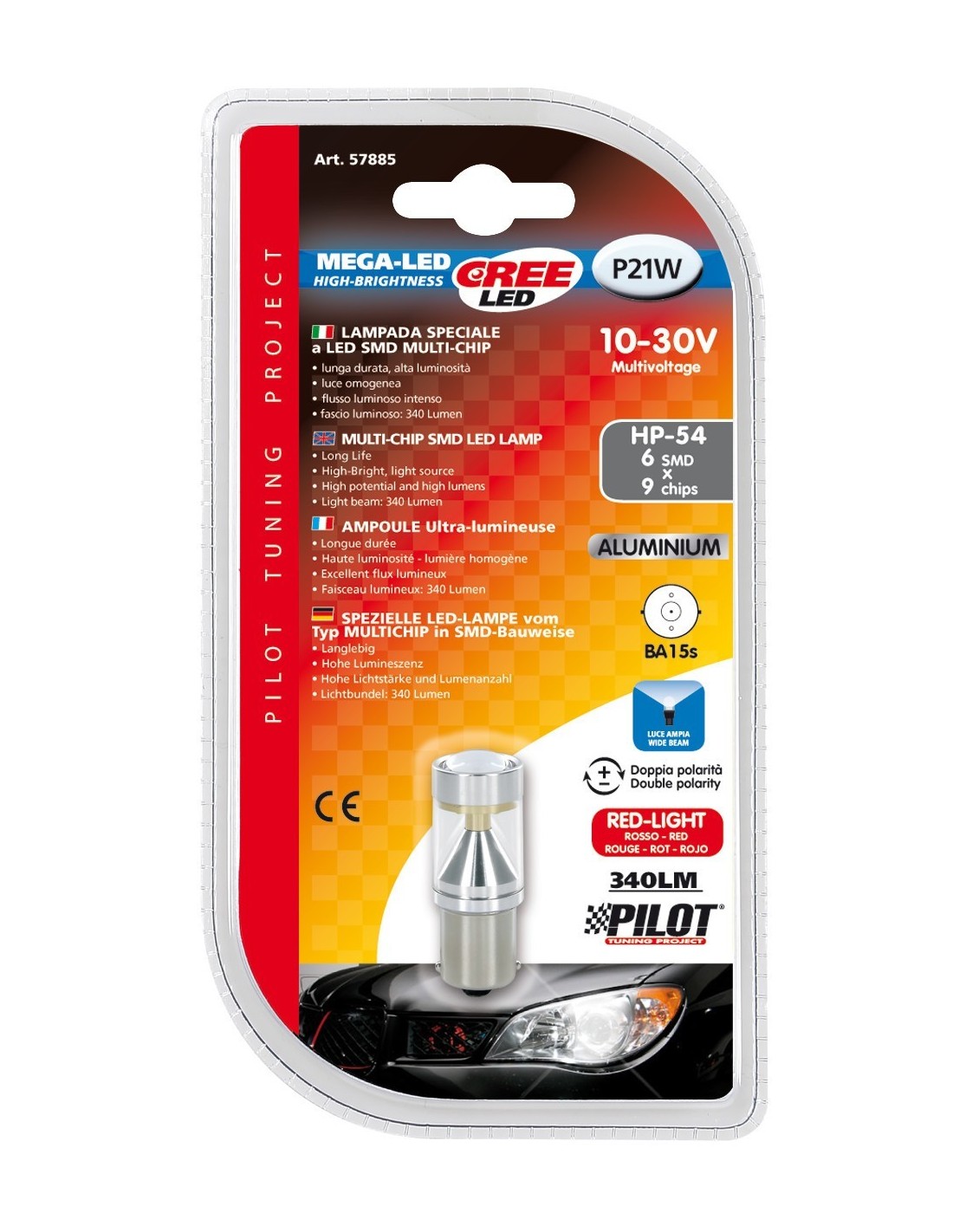-LAMPADA MEGA-LED--10-30V 6SMD CREE BA15S, RED COL