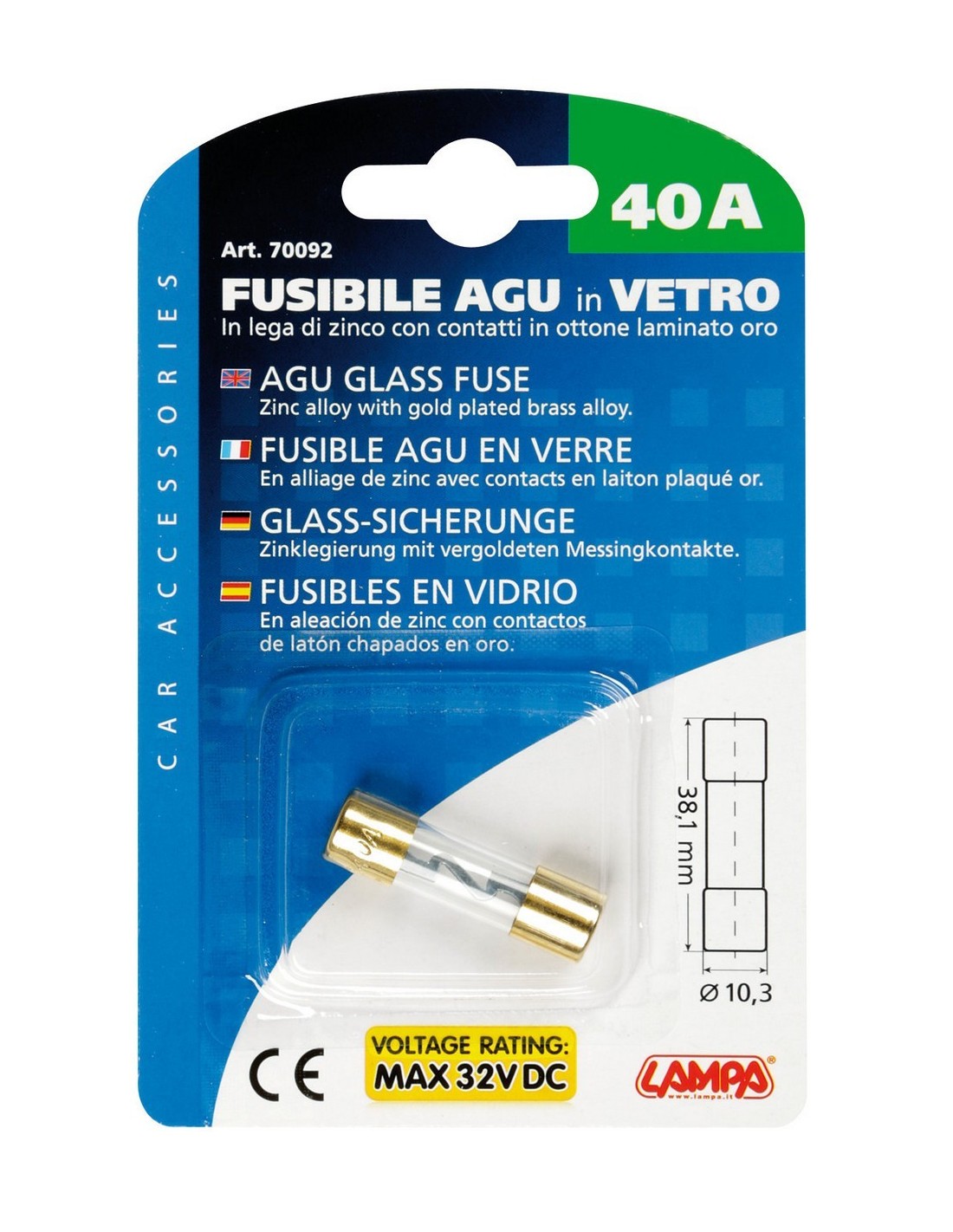 FUSIBILE AGU IN VETRO 40AMP.