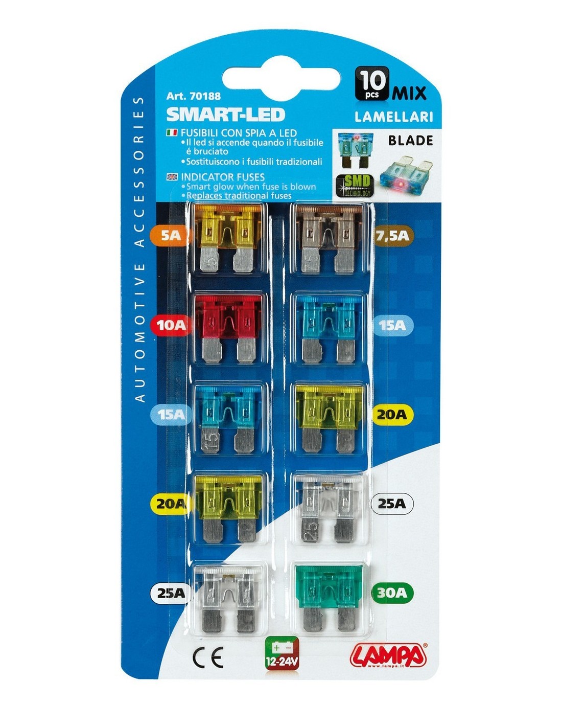 CART.FUSIBILI LAMELLARI C/LED AMPERAGGIO ASSORTITO