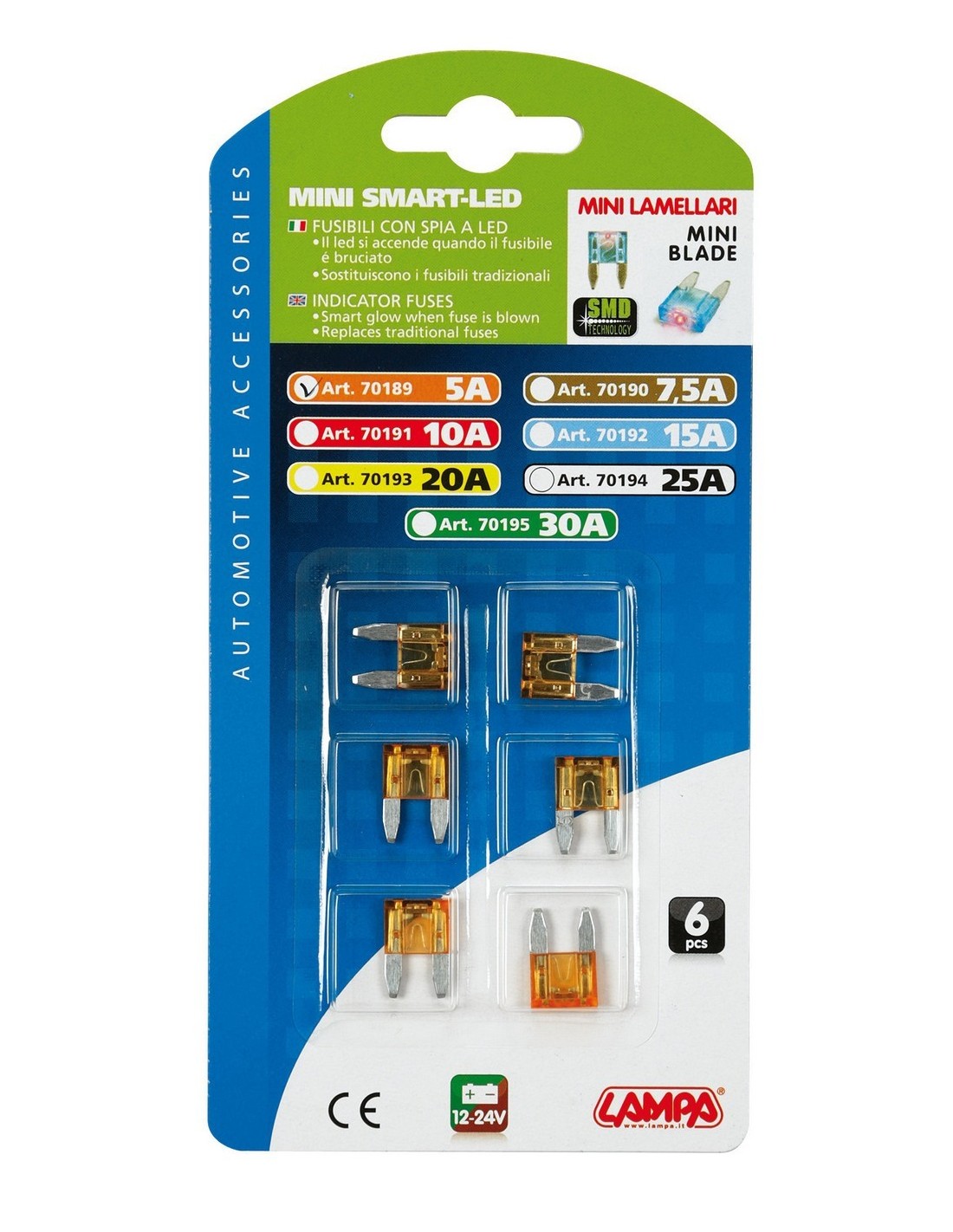 CART.MINIFUSIBILI LAMELLARI CON LED 5A, 6PZ
