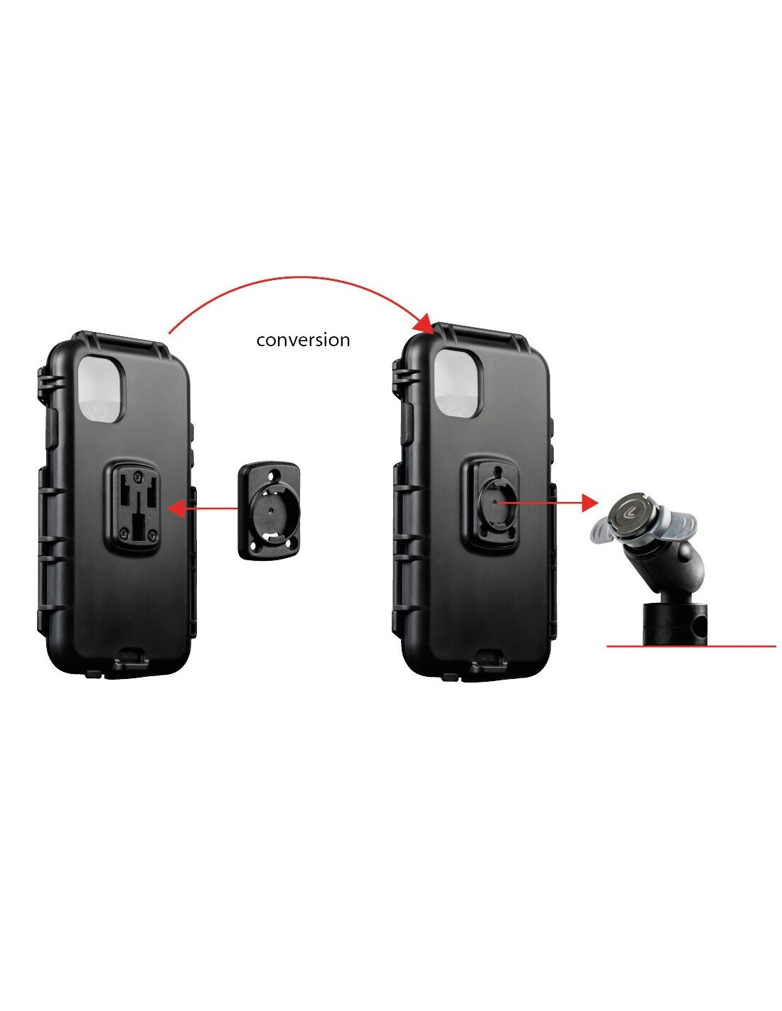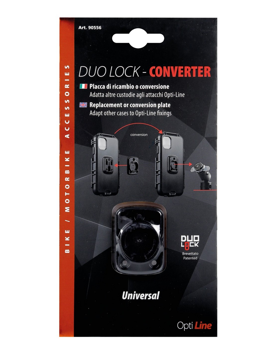 • Placca di conversione per adattare custodie di altri marchi (con fissaggio a 3 viti) con i sistemi di fissaggio Duolock