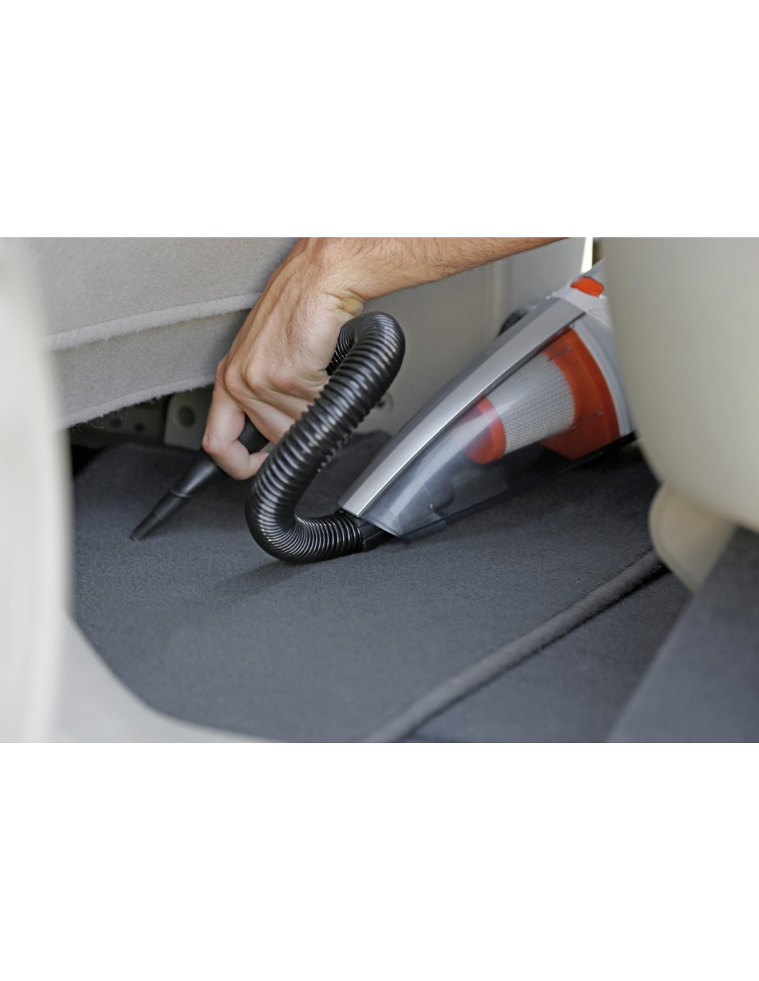 Cyclone system. Collegamento alla presa accendisigari. Cavo maggiorato da 400 cm per raggiungere anche i punti più distanti. Con filtro asportabile per un facile svuotamento. Completo di accessori: prolunga flessibile, bocchetta larga con spazzola, bocchetta sottile.