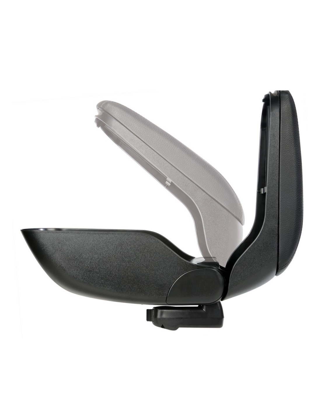 • Fornito con base di appoggio universale • Compatibile con gli attacchi specifici (da ordinarsi a parte) per una perfetta installazione su misura a seconda del veicolo • Morbido piano di appoggio scorrevole e ribaltabile • Rivestimento in Skeentex con cuciture a 3 fili • Ampio vano portaoggetti interno
