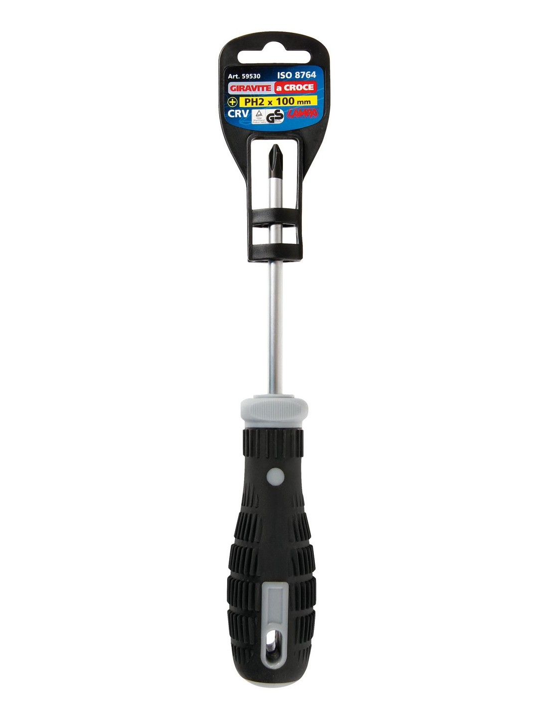 In acciaio cromo vanadio. Impugnatura bicomponente, con grip morbido e antiscivolo. Confezione singola. Norma: ISO 8764