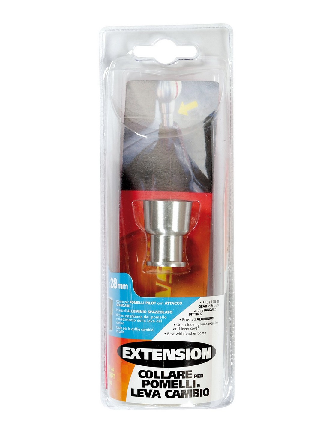 In lega di alluminio spazzolato. Ottima estensione del pomello e rivestimento della leva del cambio. Non idoneo per l'utilizzo su vetture con leva cambio speciale (ghiera innesto retromarcia a siringa)