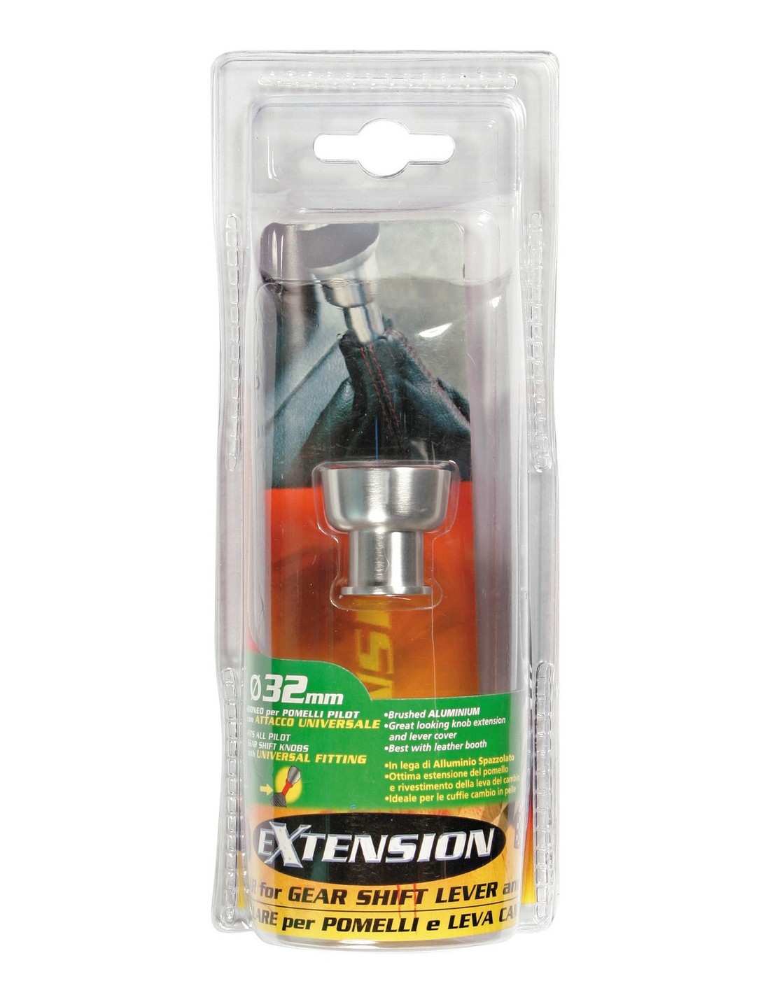 In lega di alluminio spazzolato. Ottima estensione del pomello e rivestimento della leva del cambio. Non idoneo per l'utilizzo su vetture con leva cambio speciale (ghiera innesto retromarcia a siringa)