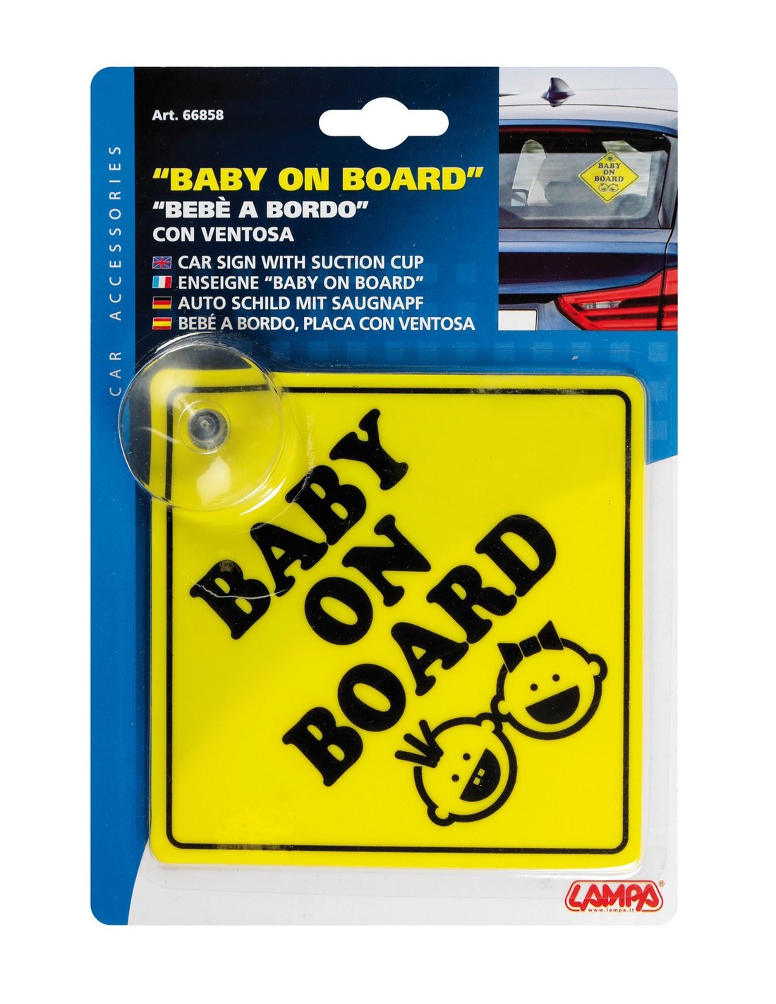 • Si applica ai cristalli tramite la ventosa in dotazione. • Altamente visibile, segnala agli automobilisti la presenza di bambini a bordo per una maggiore sicurezza. • Prodotto in plastica resistente. • Rimovibile e riutilizzabile