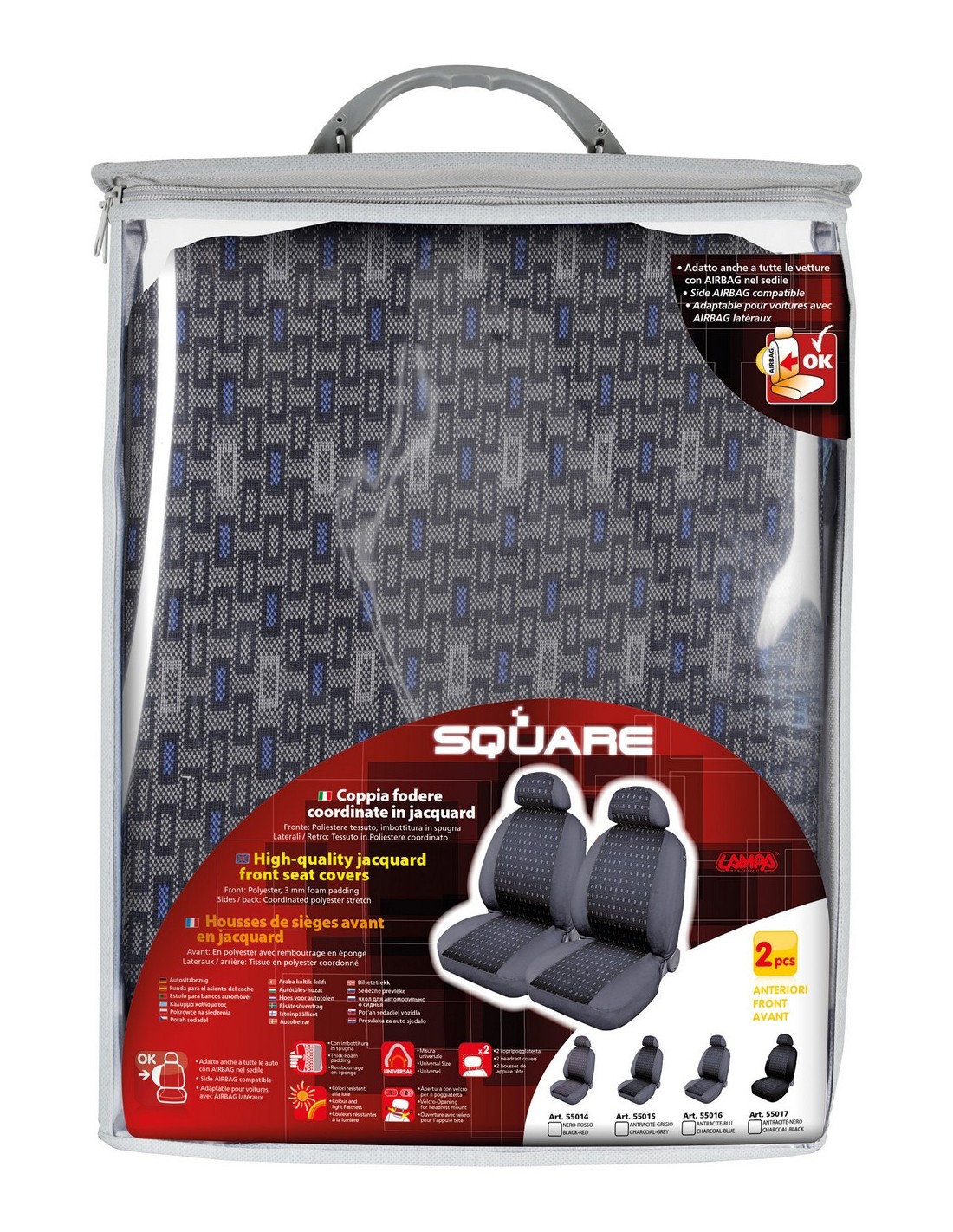 Square, coppia coprisedili anteriori in jacquard - Blu