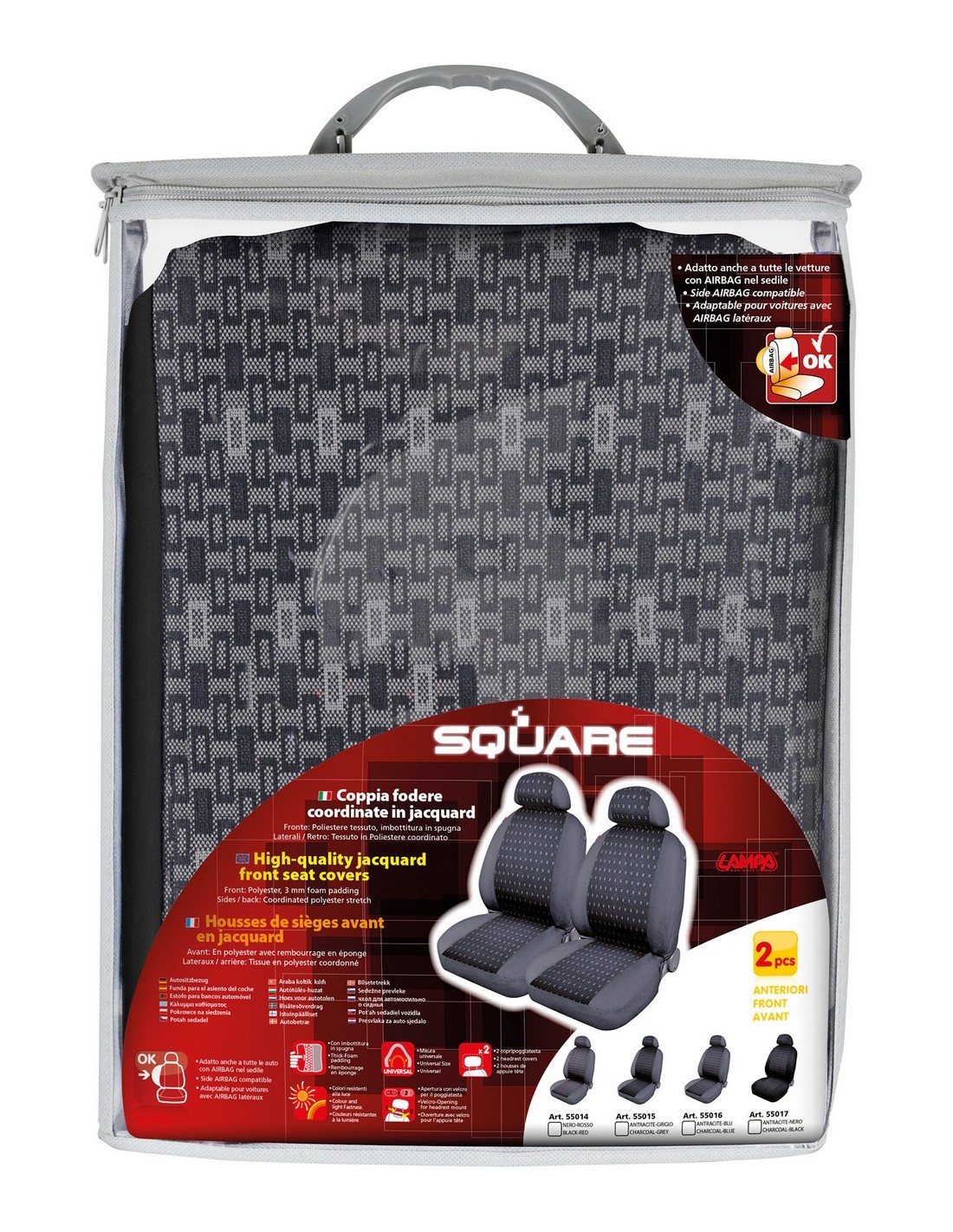 Square, coppia coprisedili anteriori in jacquard - Nero