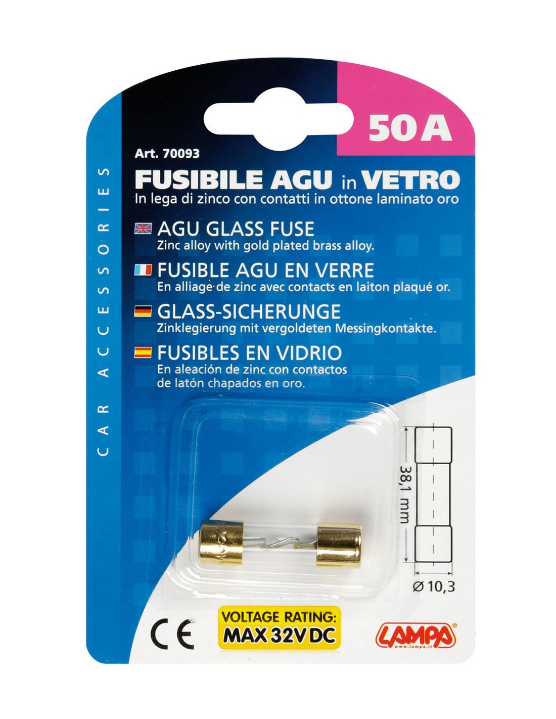 Fusibile AGU in vetro, 12/32V - 50A