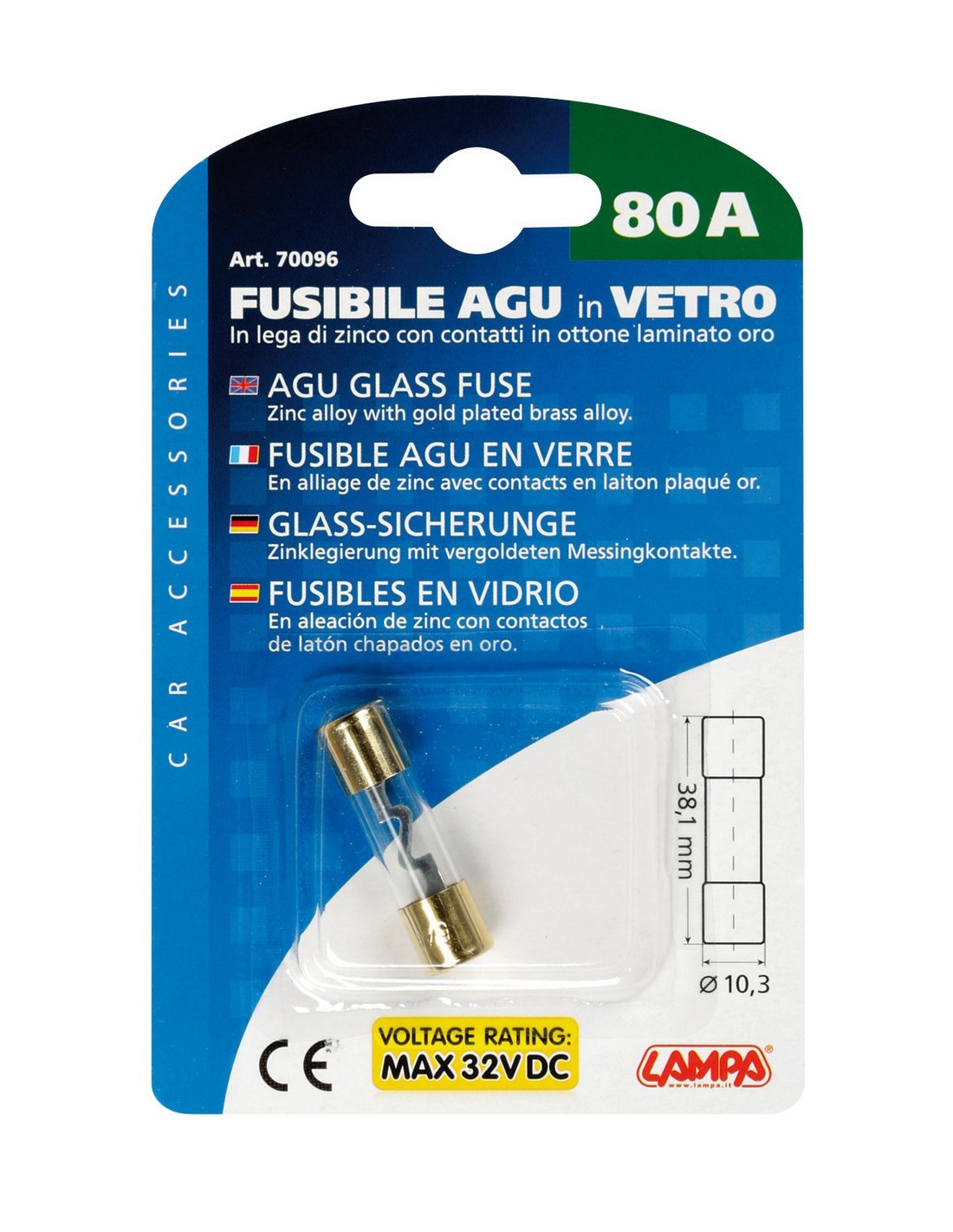 FUSIBILE AGU IN VETRO 80AMP. 70096 LAMPA