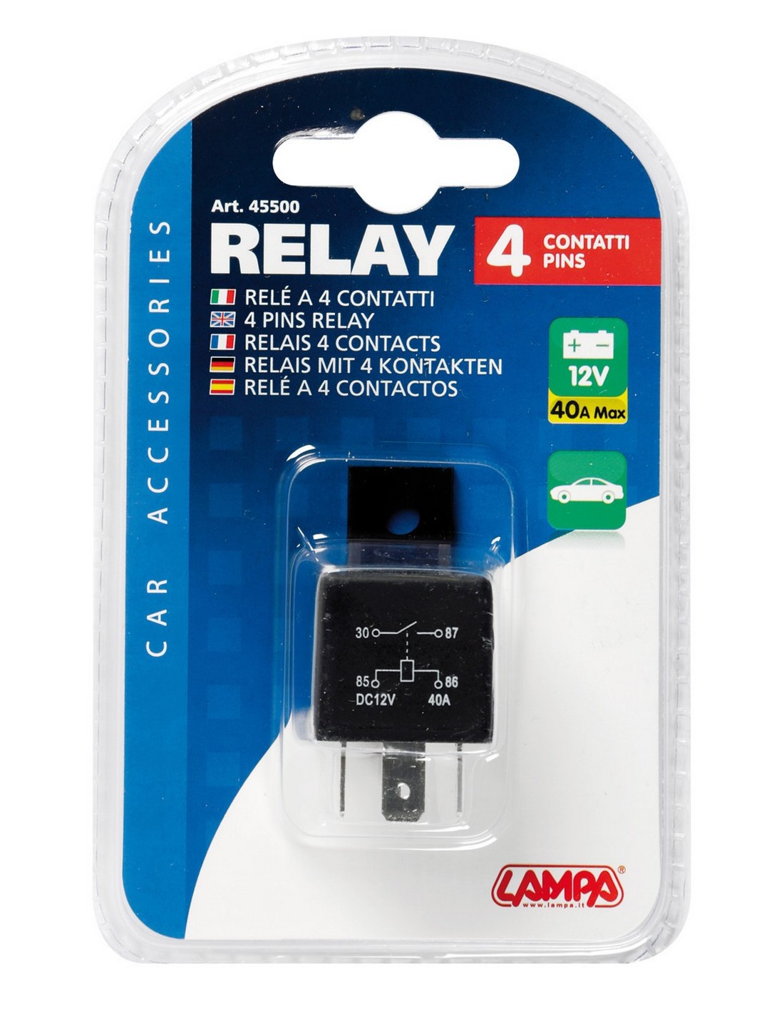 RELE' UNIVERSALE 12V-30A 4 CONTATTI 45500 LAMPA