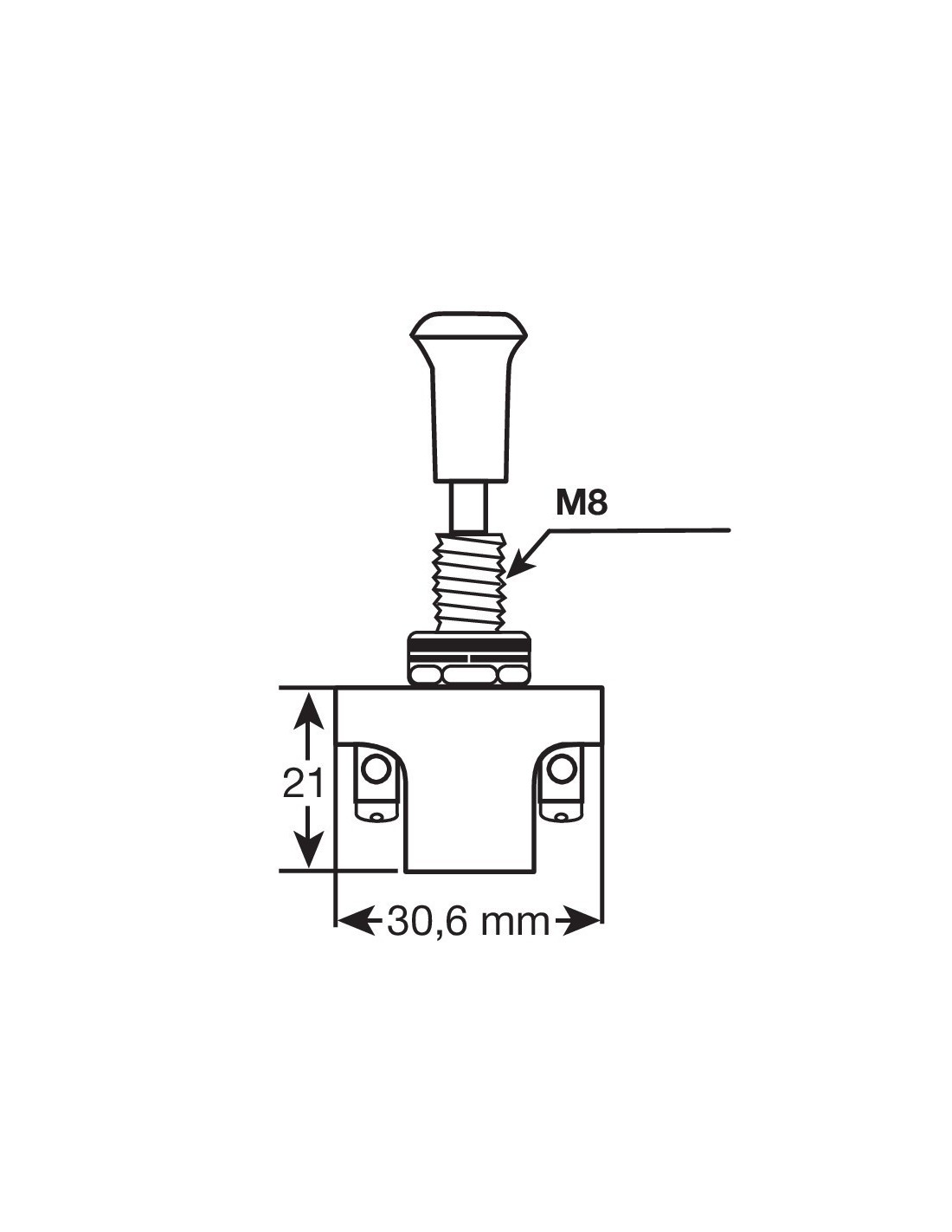 10A max. Funzione:Acceso/Spento. 2 contatti. Foro Ø 8,5 mm. Spessore max 10 mm.