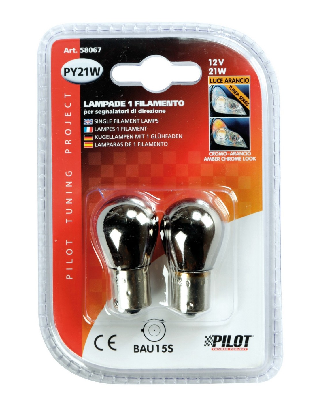 COPPIA LAMPADINA 12V.BAU15S 21W 1FILAM CROMO-ARANCIO (PY21W) 58067 LAMPA