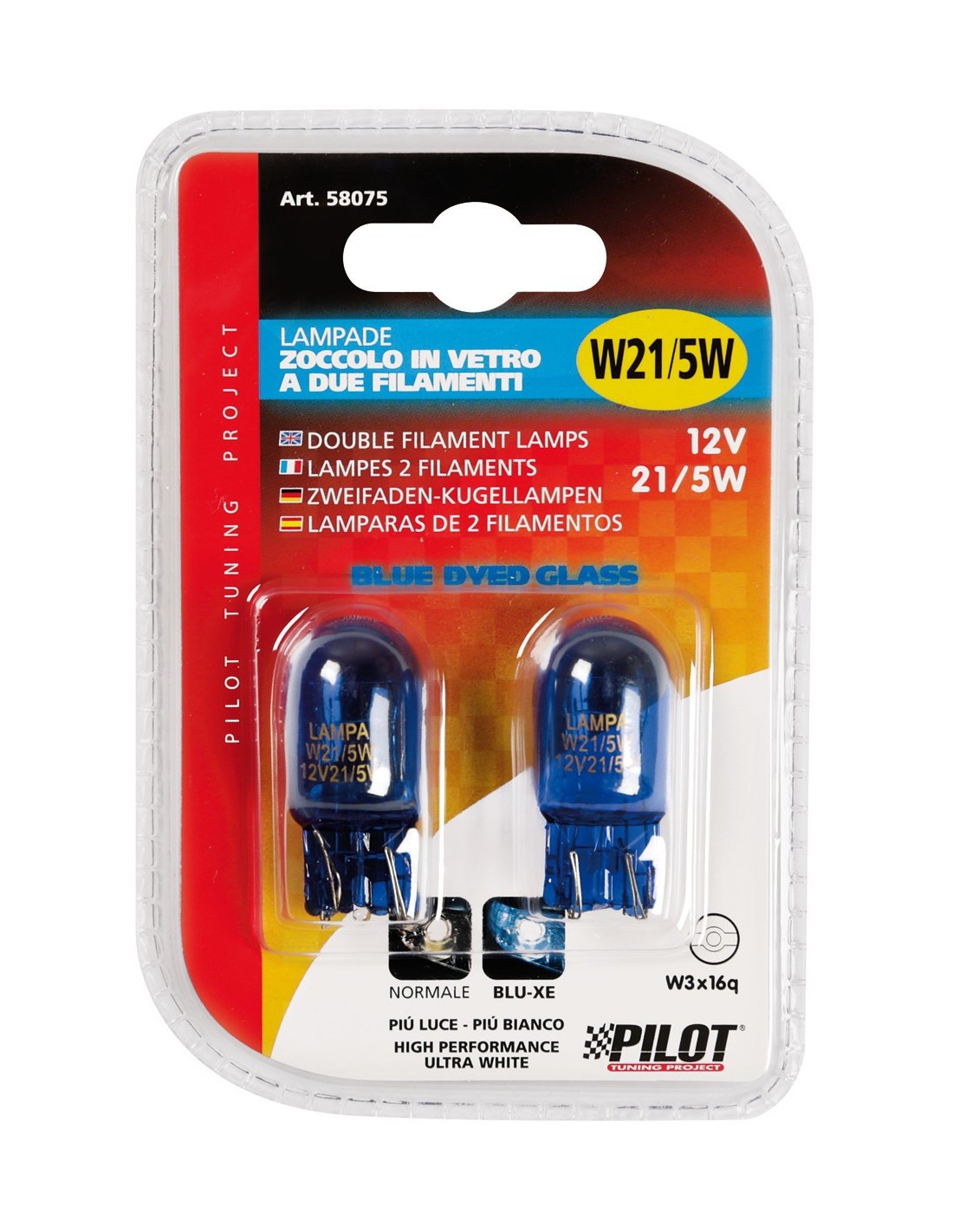 COPPIA LAMPADINA BLUE-DYED 12V. 21/5W W3X16Q 58075 LAMPA