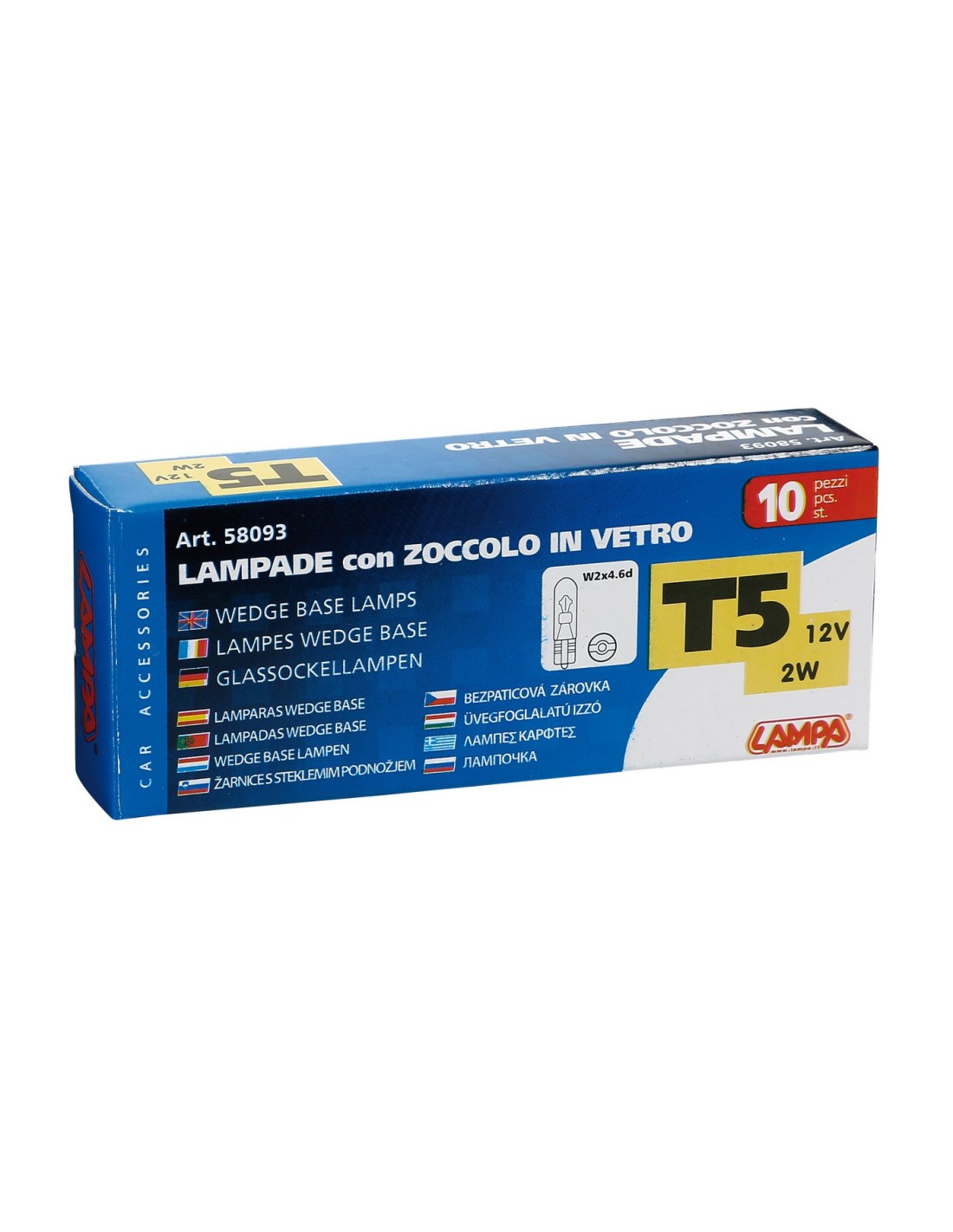 SET 10 LAMPADINE ZOCCOLO VETRO T5 12V.2W, SCATOLA 58093 LAMPA