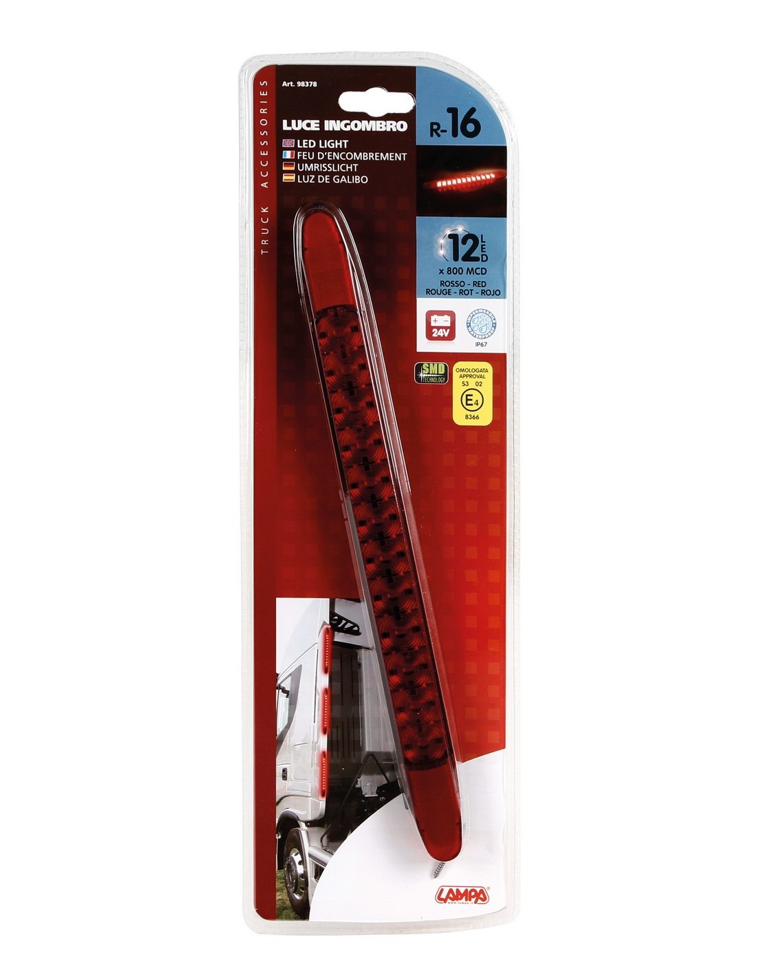 Luce ingombro - 12 Led - 24V - Rosso