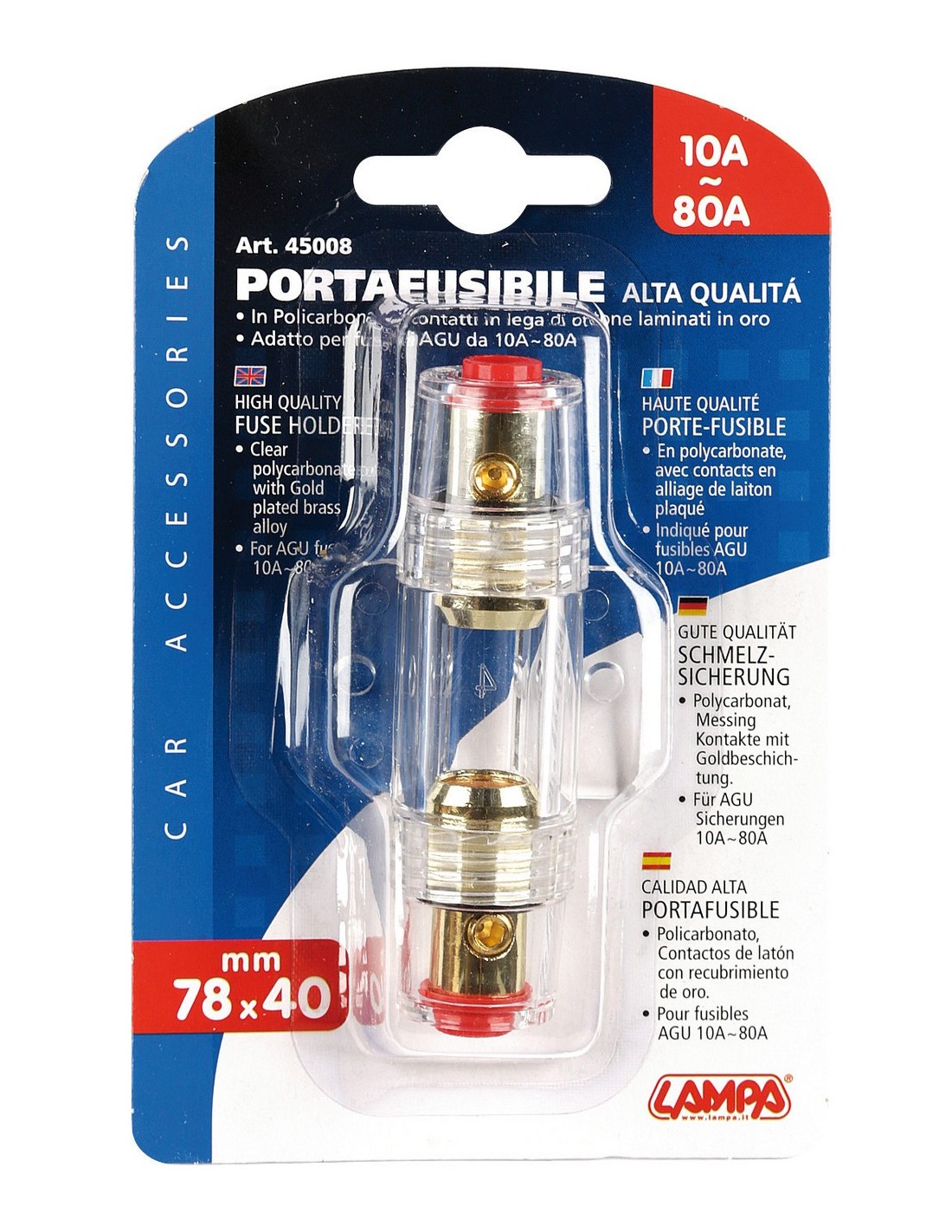 PORTA FUSIBILE IN POLICARBONATO PER FUSIBILE AGU 10A- in poi 80A 45008 LAMPA
