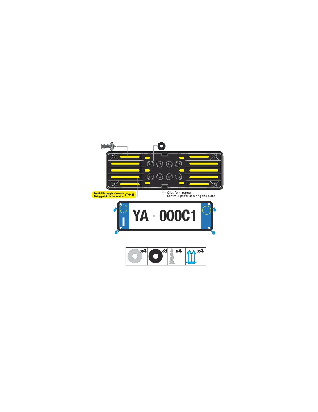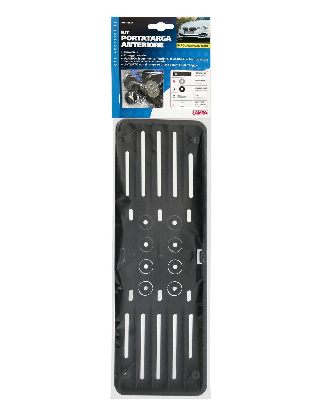 Fissaggio rapido. Universale. Antiurto, non si rompe se urtato durante il parcheggio. Plastica leggermente flessibile. Si adatta alle lievi curvature del paraurti o della carrozzeria