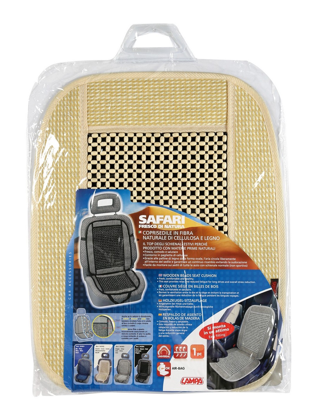 Il top degli schienali estivi perchè prodotto con materie prime naturali. Paglietta di cellulosa (carta) per il contorno e palline di legno che garantiscono il ricambio di aria tra corpo e sedile