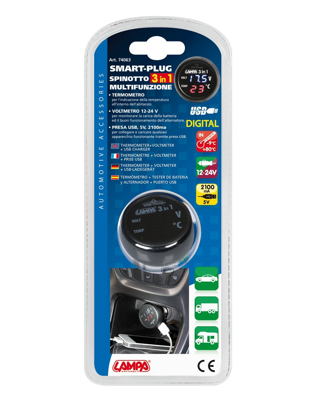 • Presa USB, 5V, 2100 mA per collegare e caricare qualsiasi apparecchio funzionante tramite presa USB