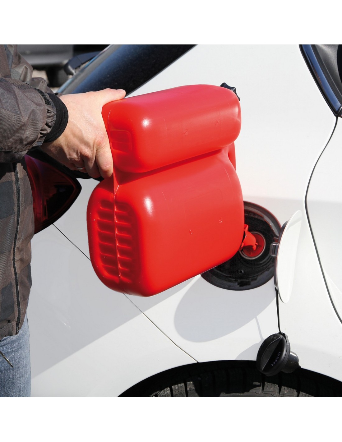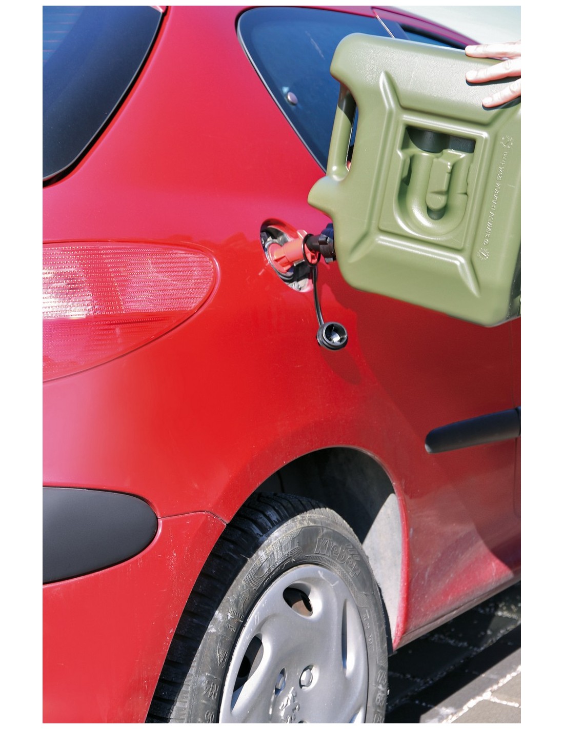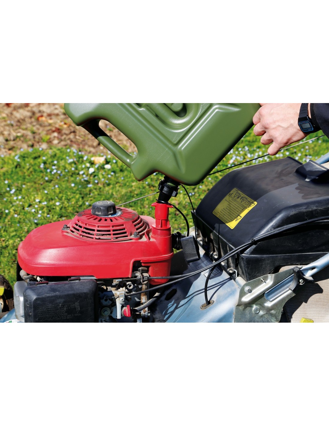 Dotato di valvola di sicurezza per evitare la fuoriuscita del carburante a serbatoio pieno. Ideale per tosaerba e piccole attrezzature.