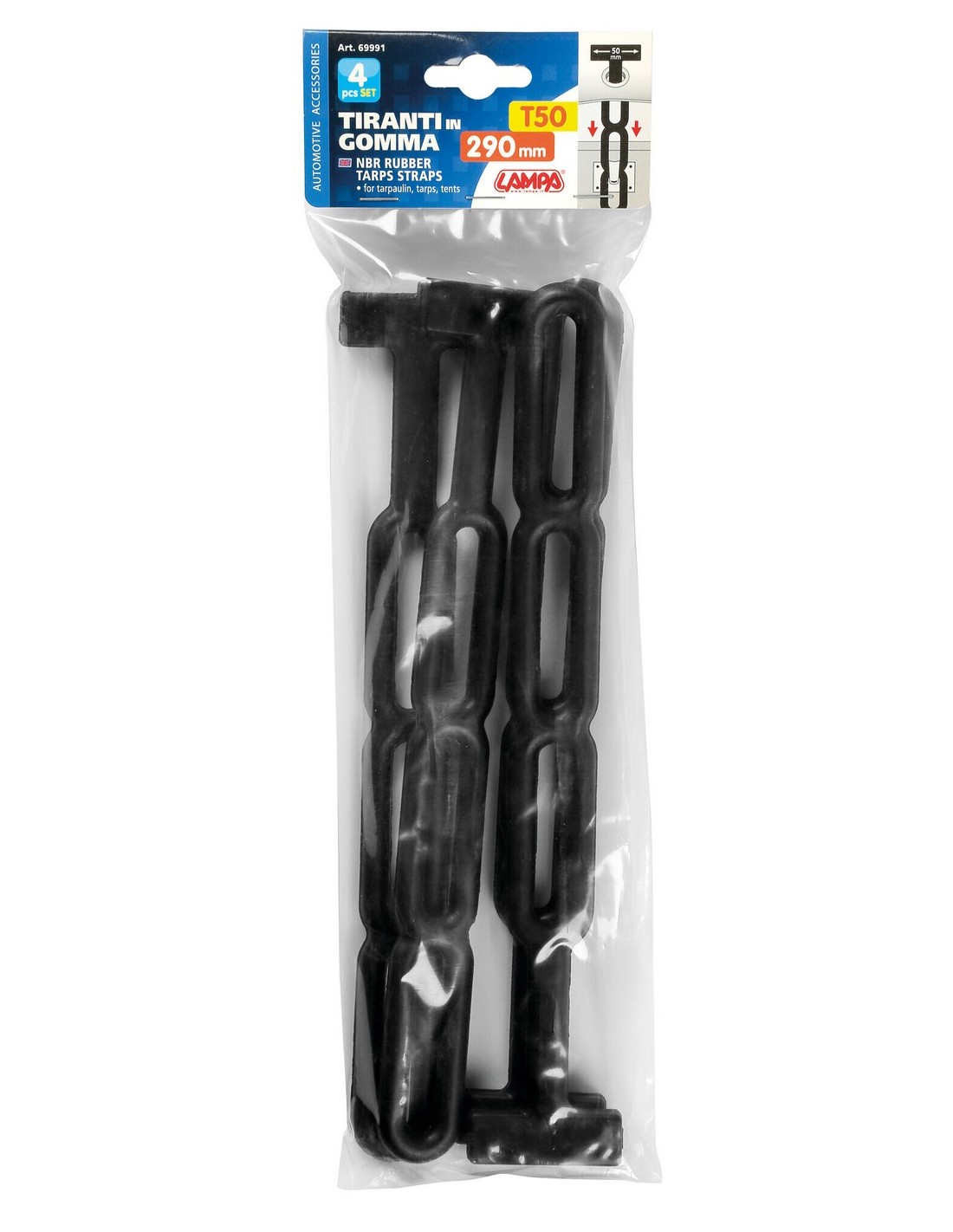 Set 4 tiranti in gomma NBR - 290x50 mm